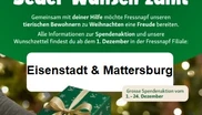 Auch dieses Jahr führt Fressnapf wieder die Weihnachtskampagne «Tierheimwünsche werden wahr» durch. Im Rahmen dieser Aktion haben Kunden die Möglichkeit, Futter und Zubehör zu kaufen und an ein Tierheim/eine Tierschutzorganisation zu spenden. Jede Filiale arbeitet mit einer Tierschutzorganisation aus der Region zusammen. Die Filialen Eisenstadt und Mattersburg werden die Spenden dem Tierschutzhaus Sonnenhof zukommen lassen.